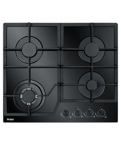 This gas on glass cooktop matches the wider Haier family of appliances, pairing well with a black wall oven.